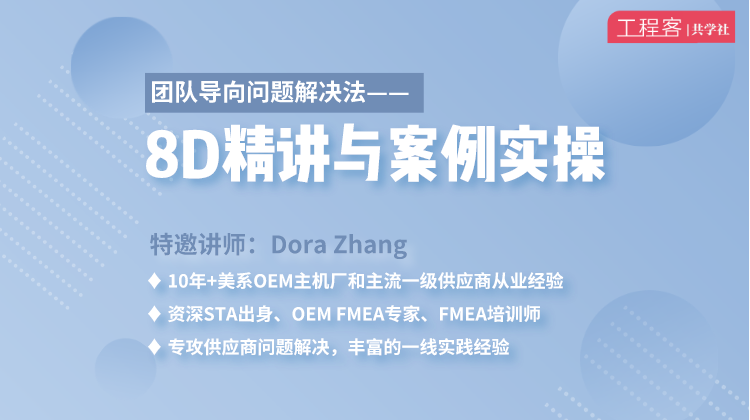 1月12日开课。团队导向问题解决法——8D精讲与案例实操